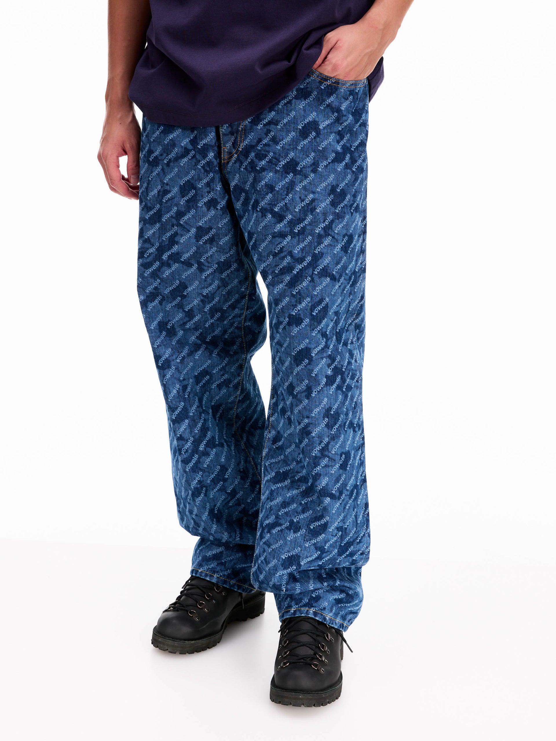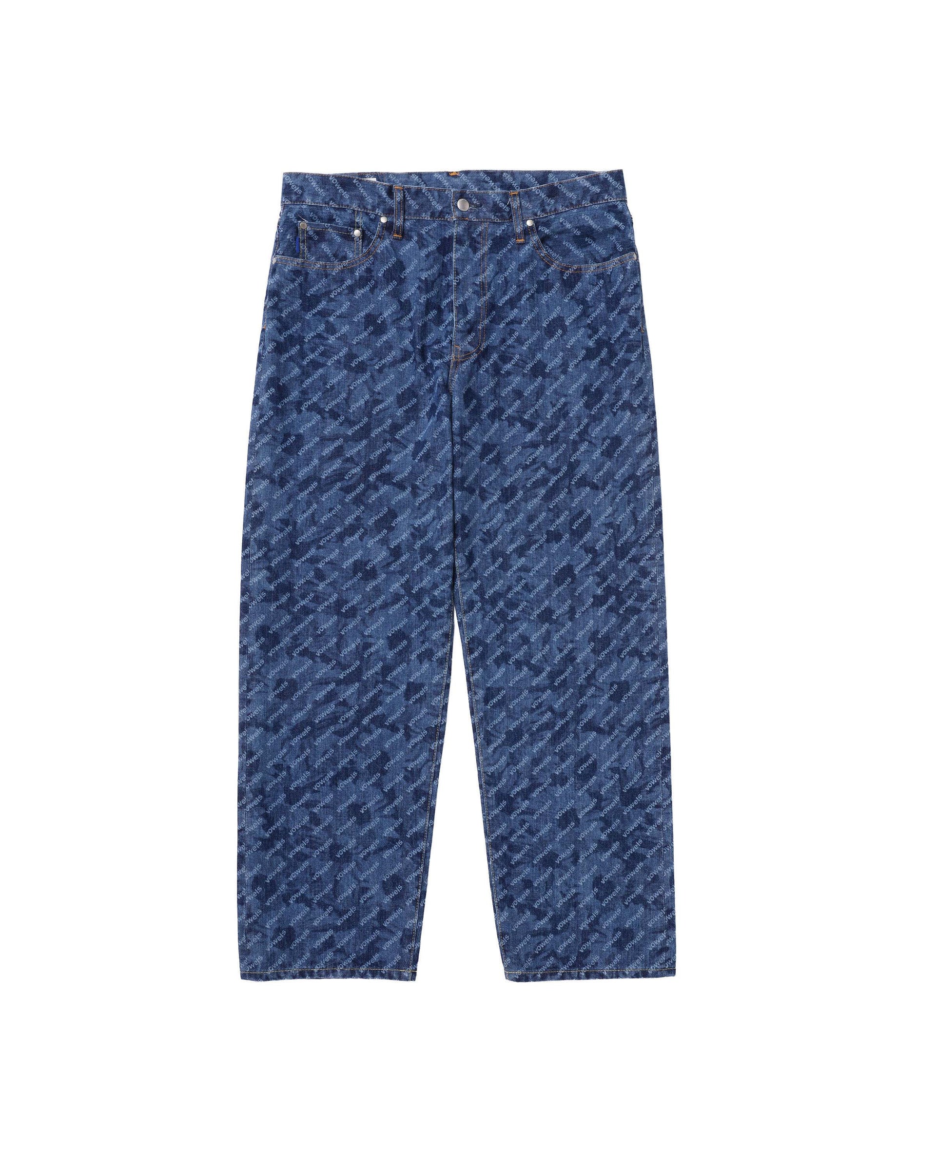 Selvedge shuttle loom denim. Featuring logo embossed rivets, logo tab on coin pocket, and custom logo patch. Cut for a relaxed, oversized fit. Taking inspiration from Levi's 66 model, for a natural, uneven look.