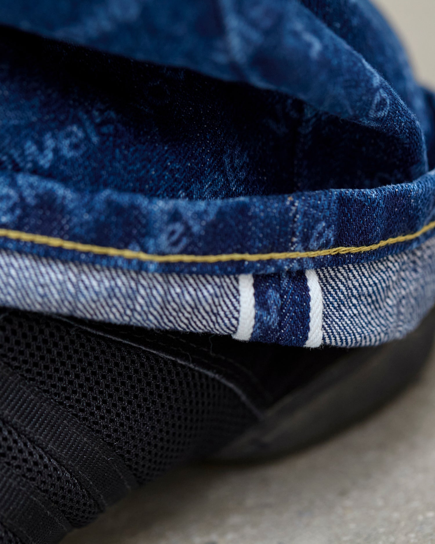 Selvedge shuttle loom denim jeans. Featuring logo embossed rivets, logo tab on coin pocket, and custom logo patch. Cut for a relaxed, oversized fit. Available in five washes, taking inspiration from Levi's 66 model, for a natural, uneven look.