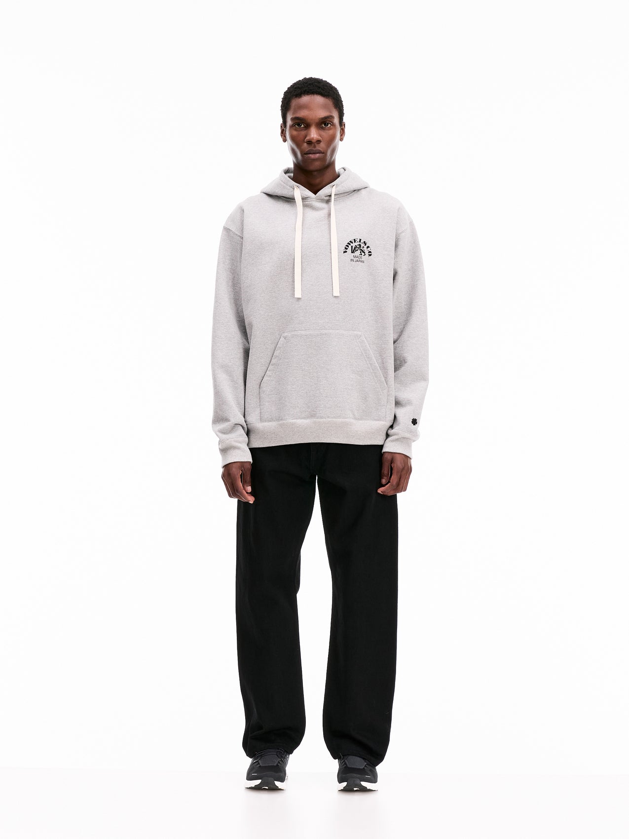 A relaxed silhouette hoodie with a printed vowels graphic. Made from a heavy gauge cotton for a more structured feel.