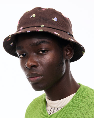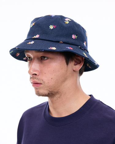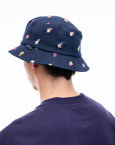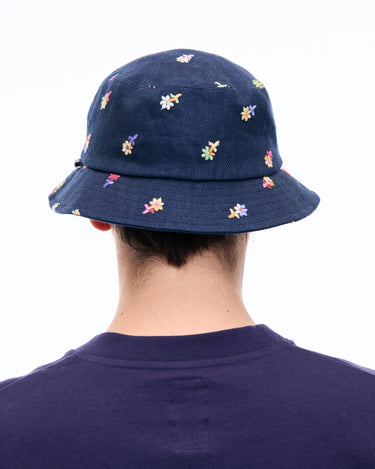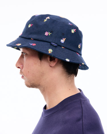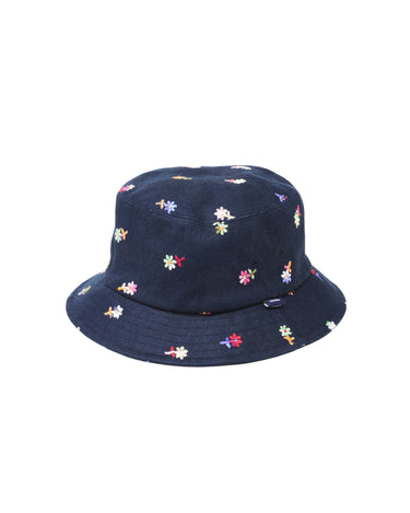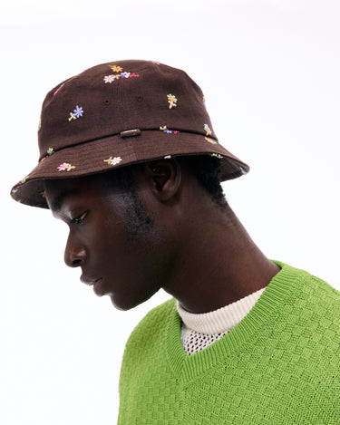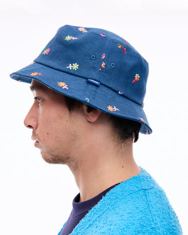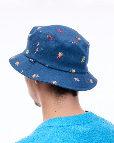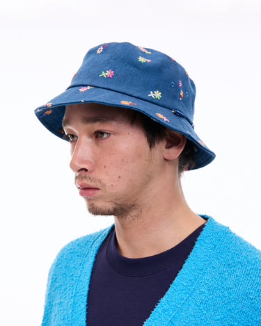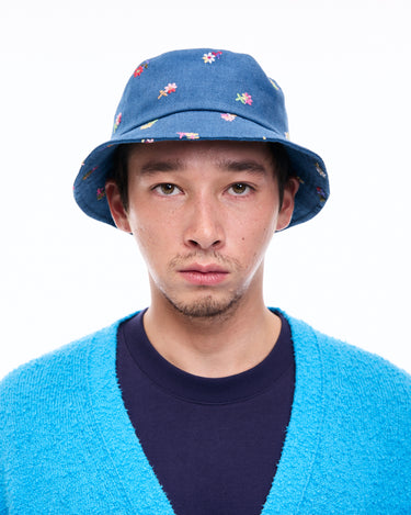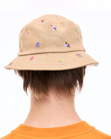 A bucket hat with vibrant floral embroidery that leaves a striking impression, perfect for casual styling.
