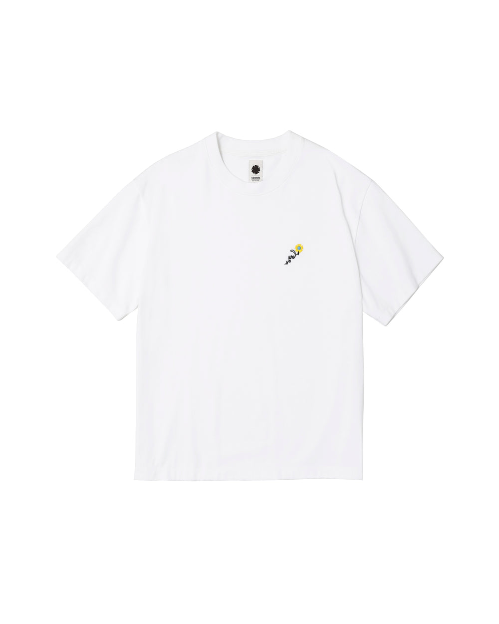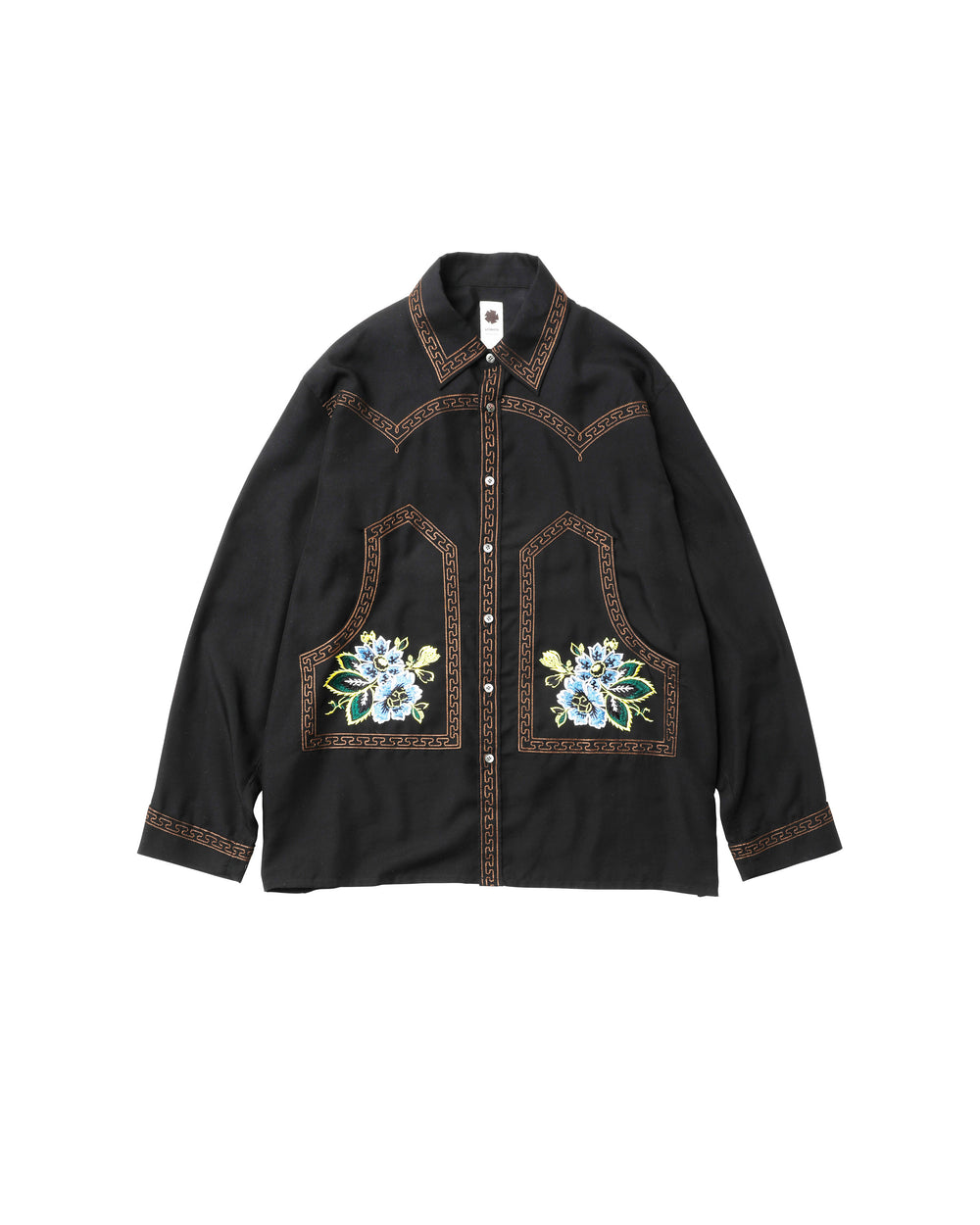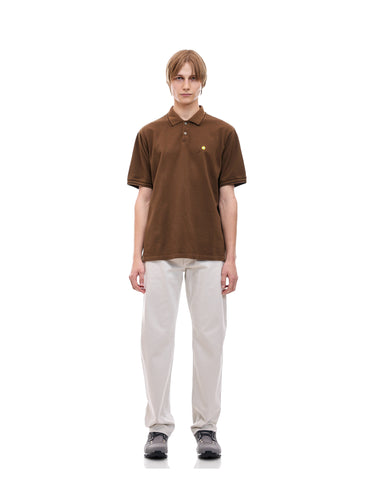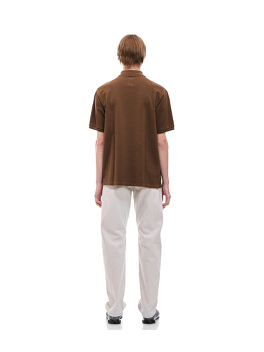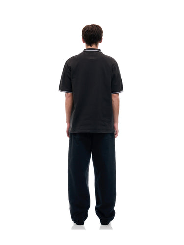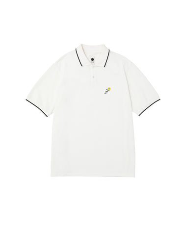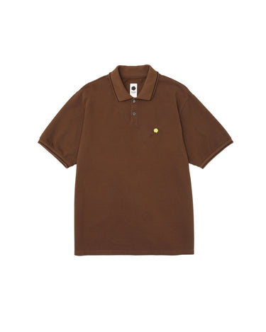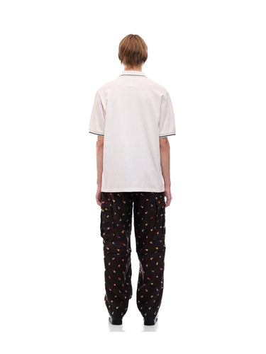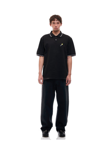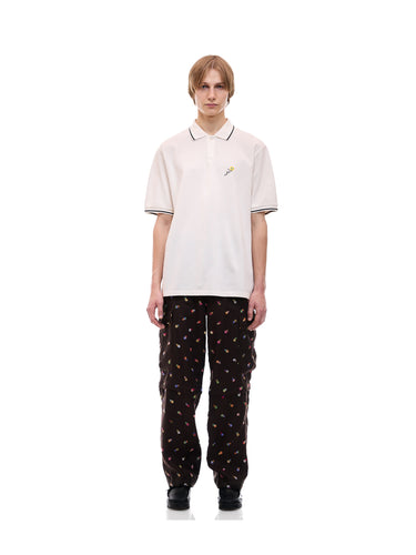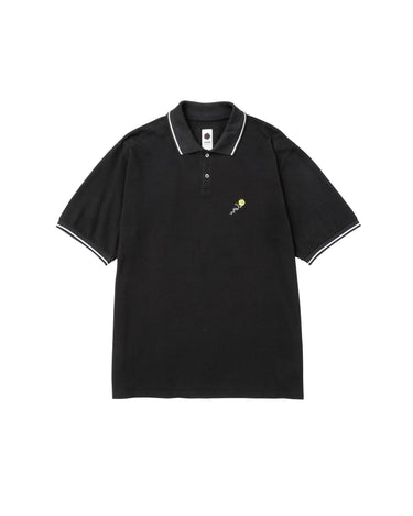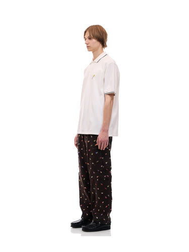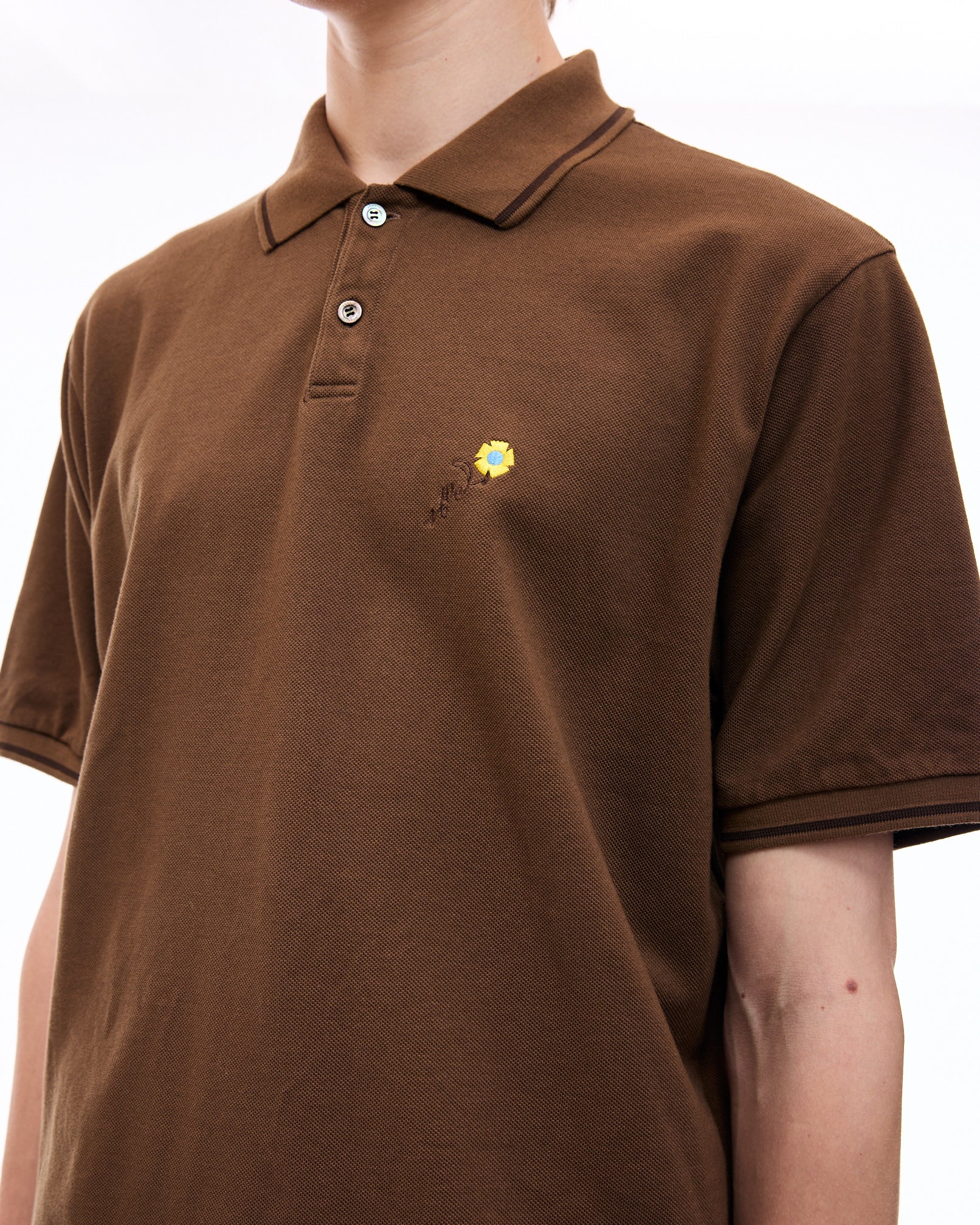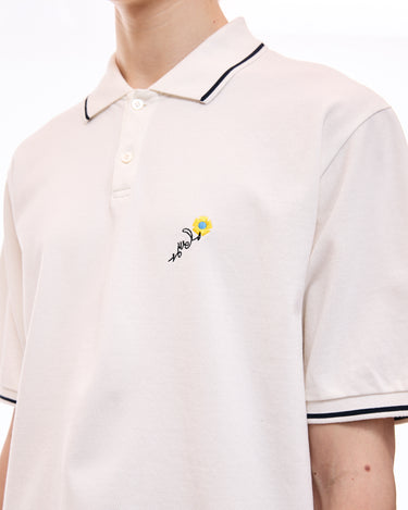 A fine woven fleece polo shirt, featuring floral motif and vowels kamon embroidery, with a garment dyed finish and branded mother-of-pearl buttons.