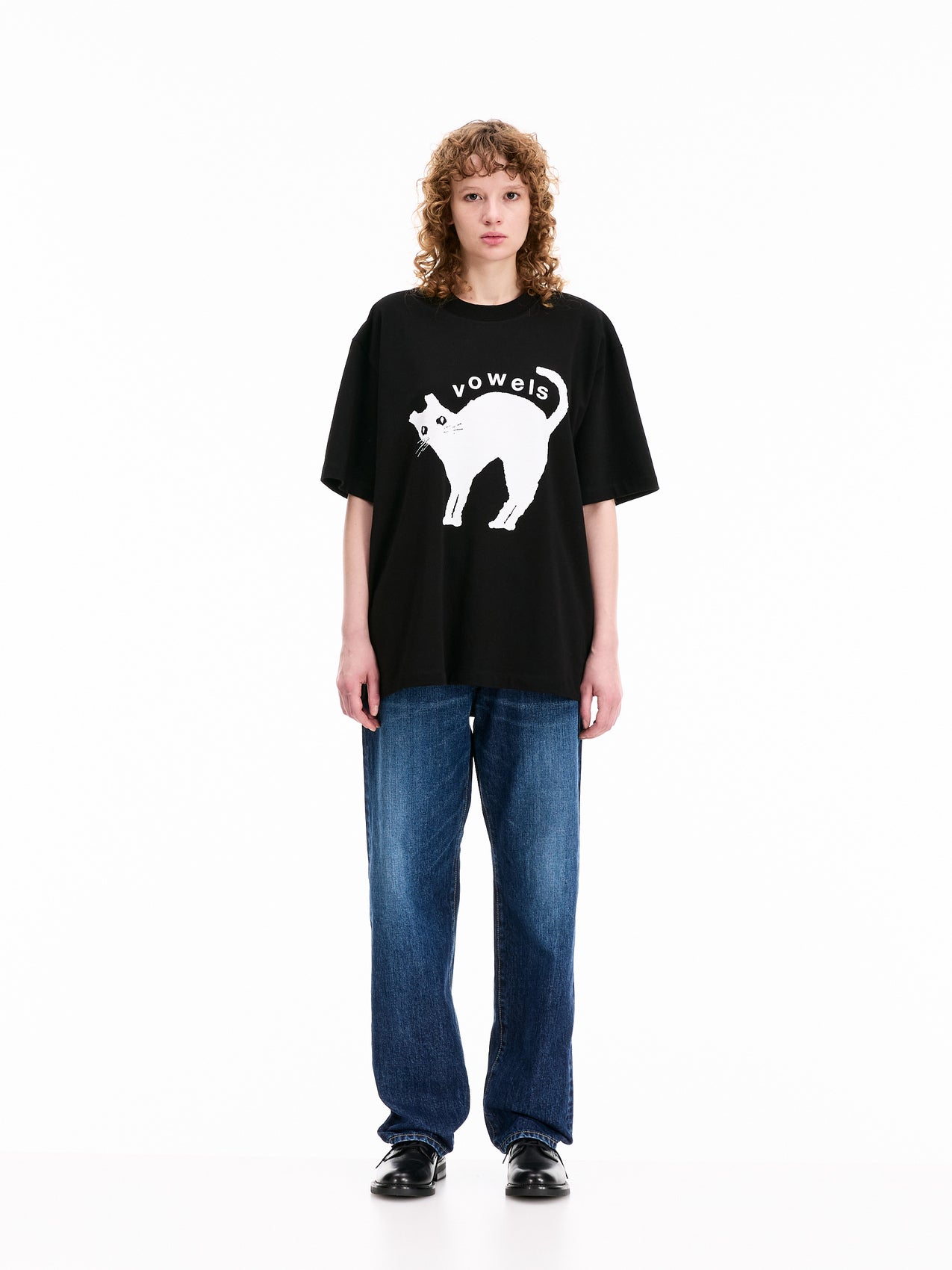 A boxy, relaxed-fit T-shirt made from thick, durable fabric with a graphic print. Inspired by a cat encounter in Florence, its visibly shaken expression has been reinterpreted into a playful character.