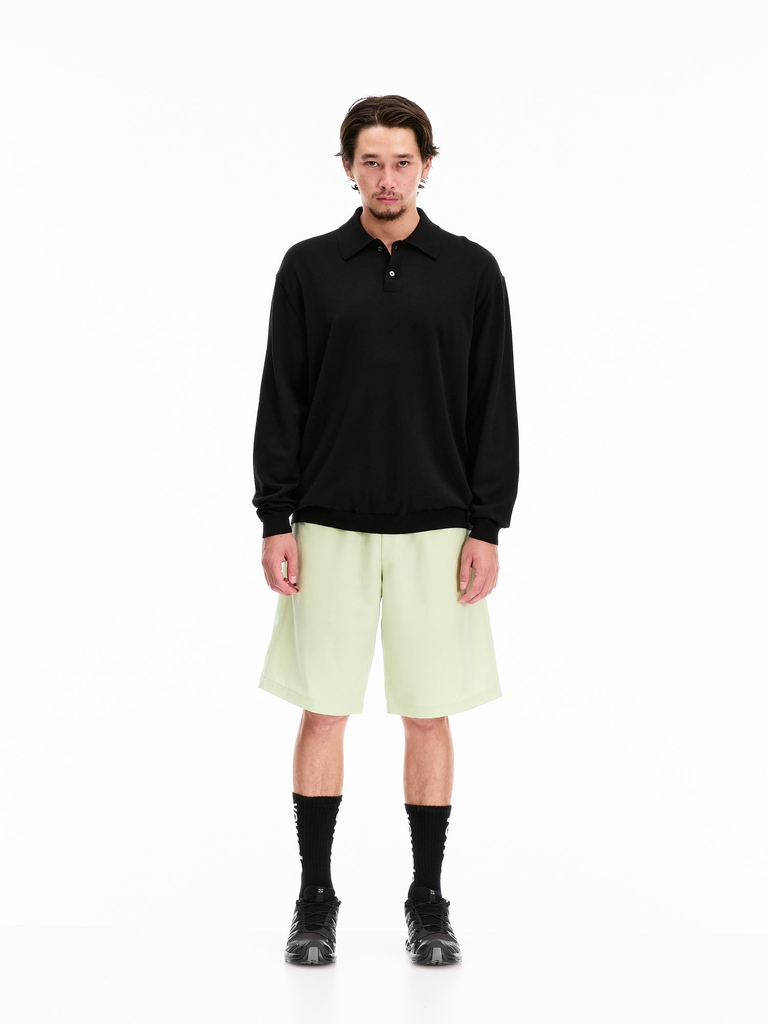 An everyday wear long-sleeve polo shirt, made with a blended yarn of silk and cotton. Featuring a soft handfeel,