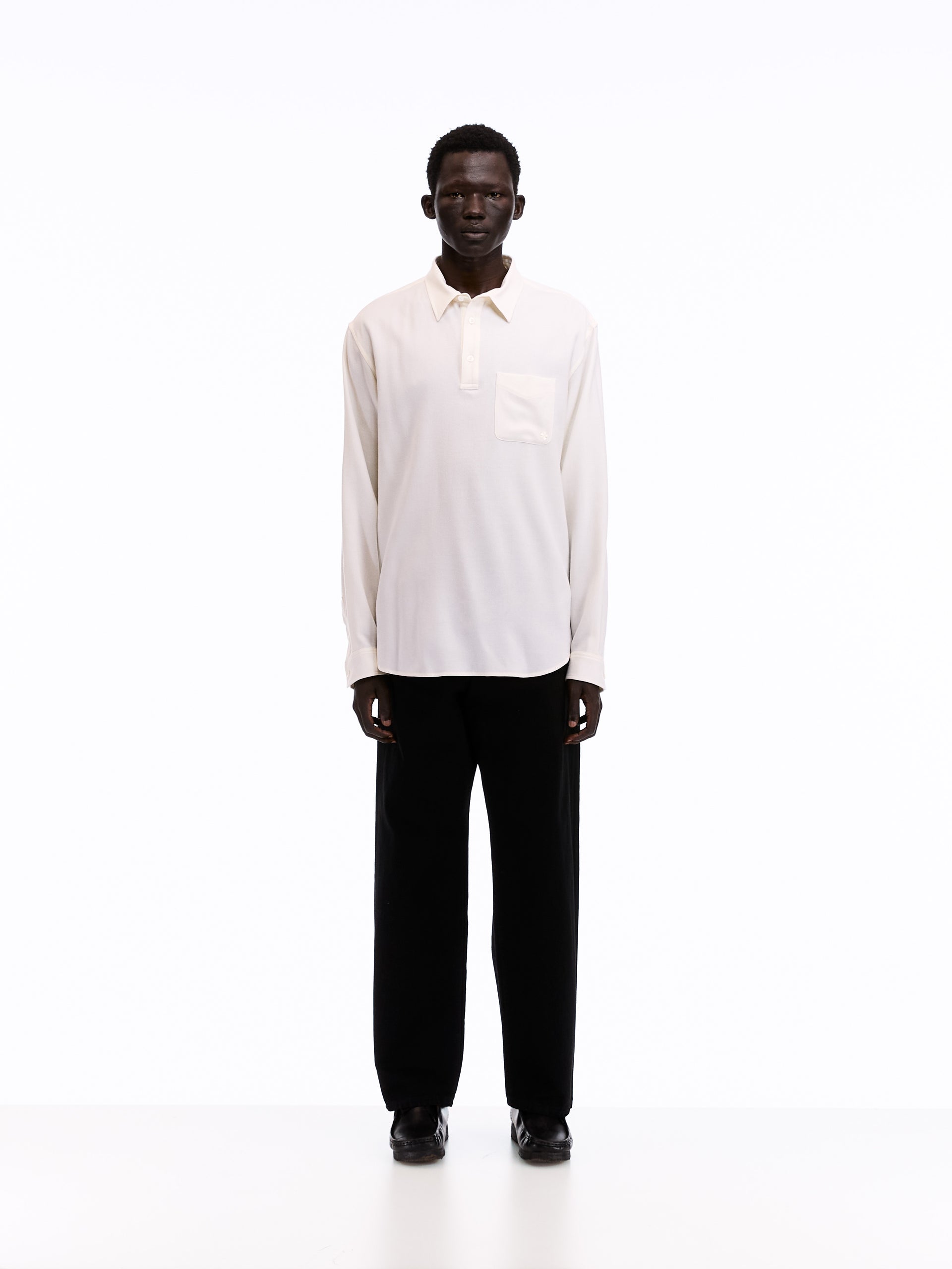 A minimal pullover shirt made from refined wool for warmth and comfort.