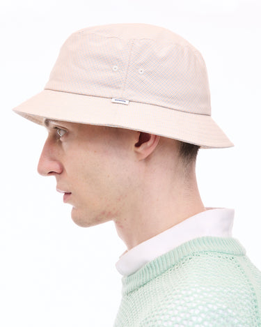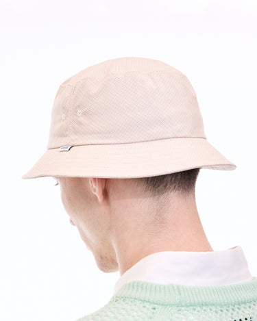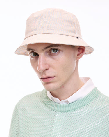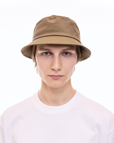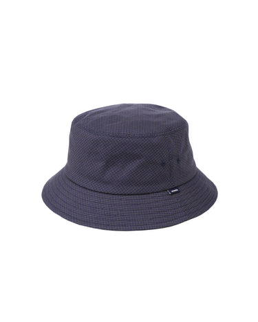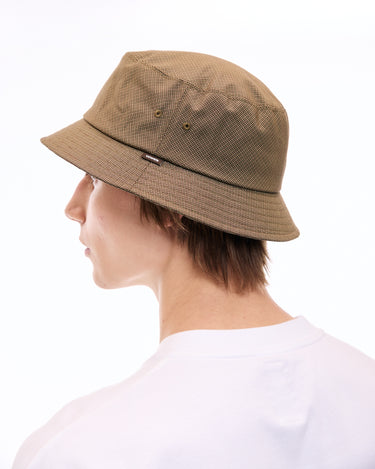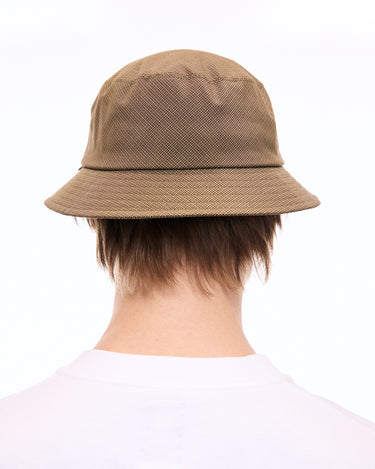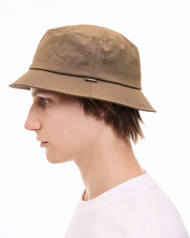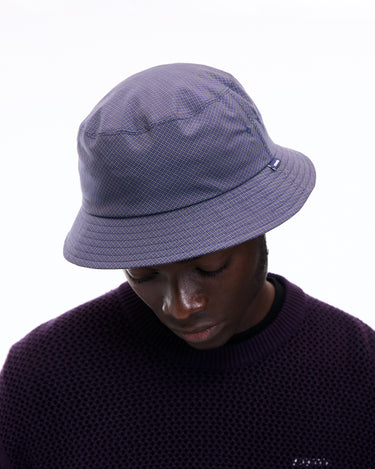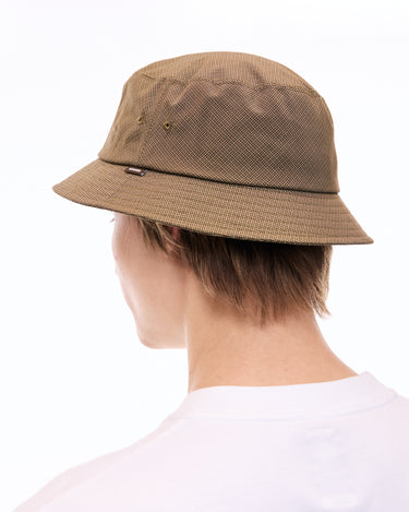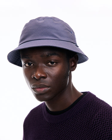 A bucket hat made from checkered silk fabric, offering a soft and elegant fit with a refined sheen.