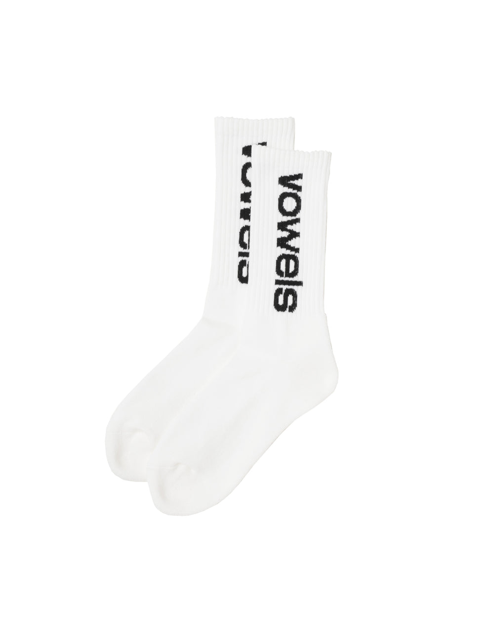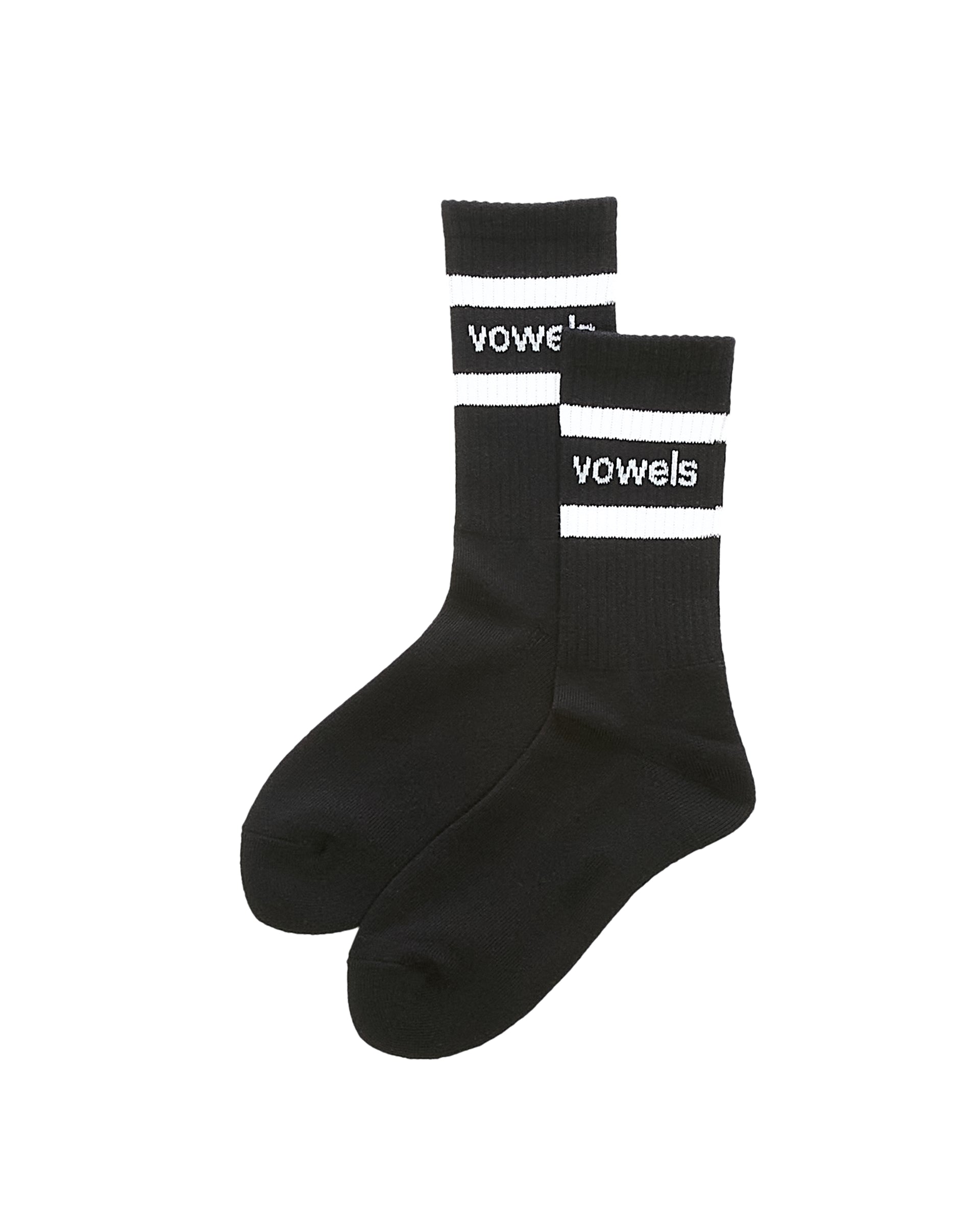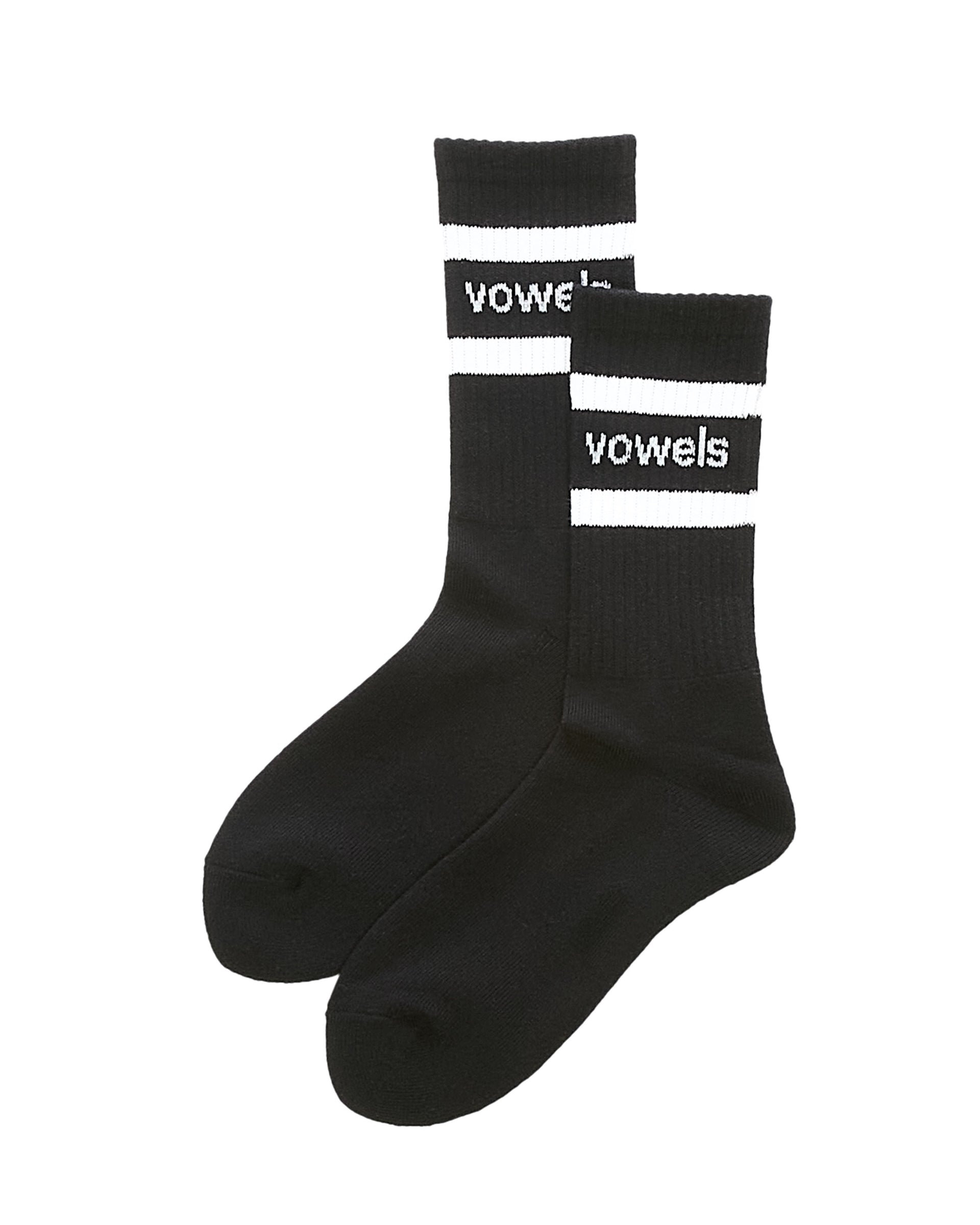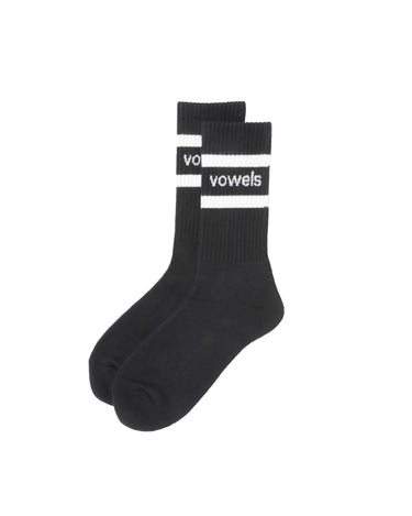 Striped Egyptian cotton crew length socks featuring vowels logo mark.