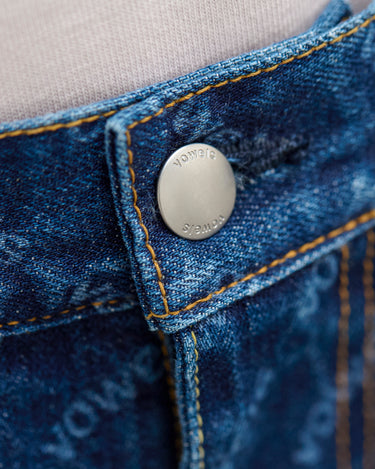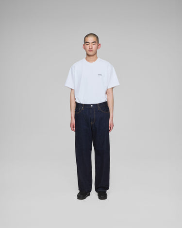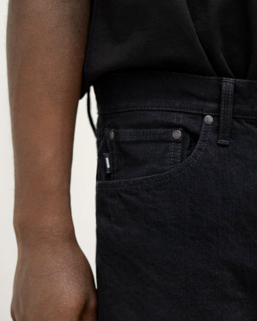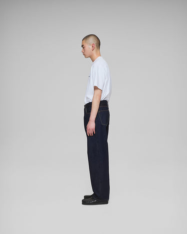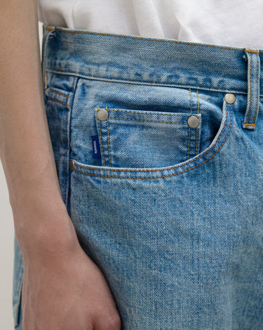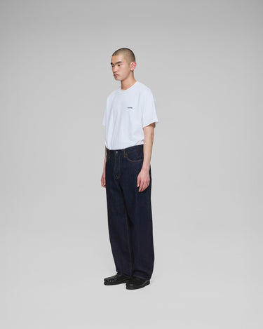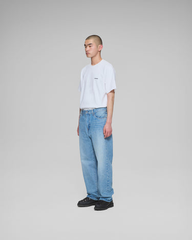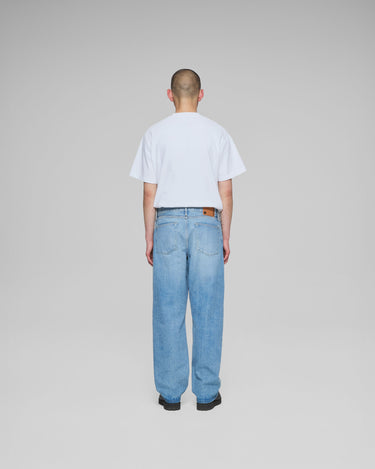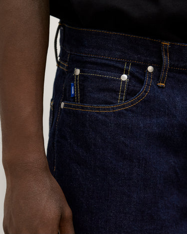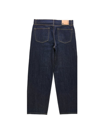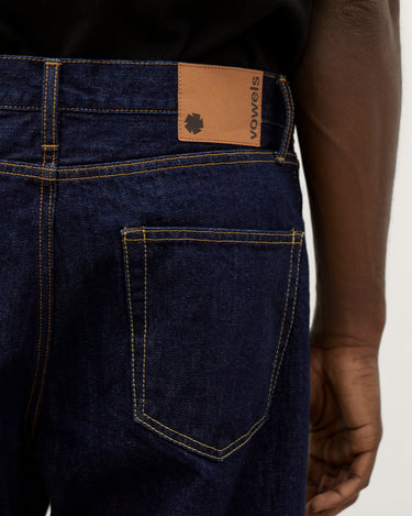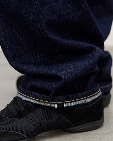 Selvedge shuttle loom denim. Featuring logo embossed rivets, logo tab on coin pocket, and custom logo patch. Cut for a relaxed, oversized fit. Available in five washes, taking inspiration from Levi's 66 model, for a natural, uneven look.