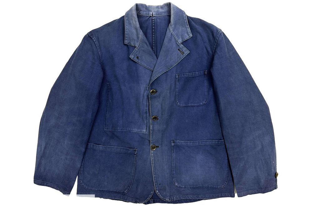 Selvedge denim jacket inspired by the classic French chore coat. Featuring custom logo embossed jeans buttons, "V" detail at sleeve closure, and vowels logo patch. Multiple exterior pockets including one zippered pocket, as well as one interior drop pocket.