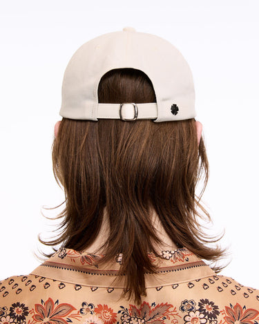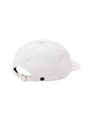 - Size adjustable back strap with logo-embossed metal buckle closure