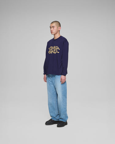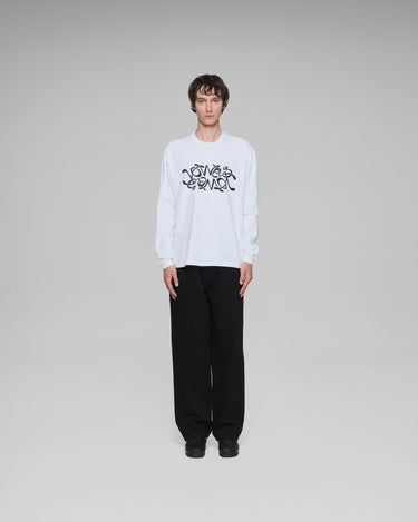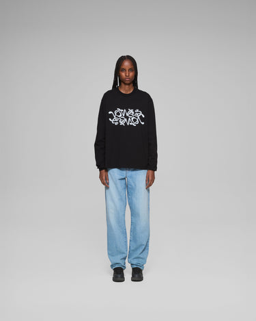 vowels scribble logo graphic screenprinted on a custom fit vowels Classic Longsleeve Tee.
