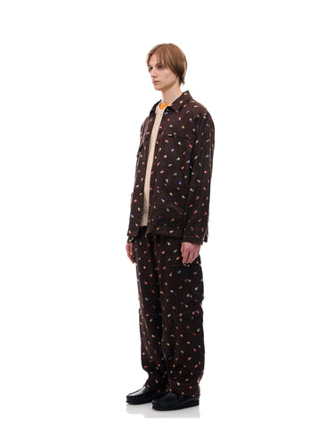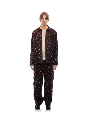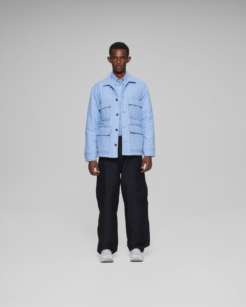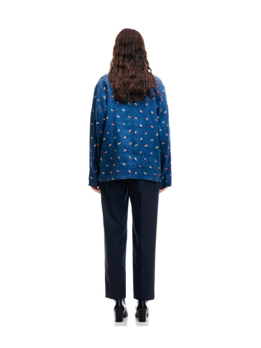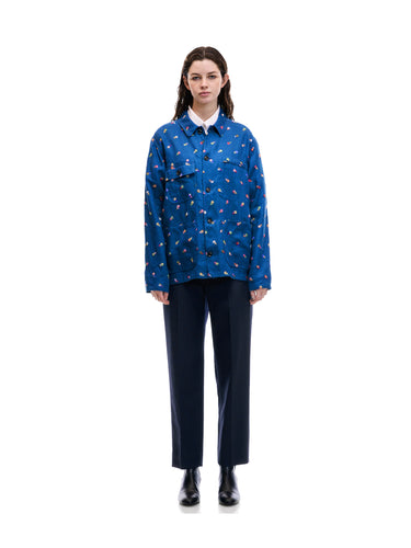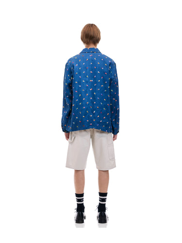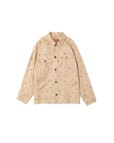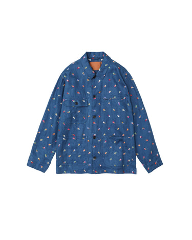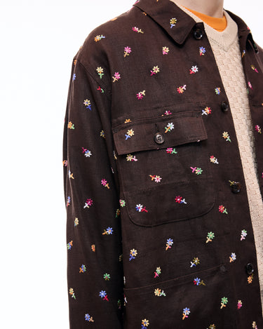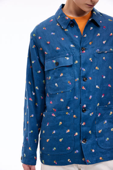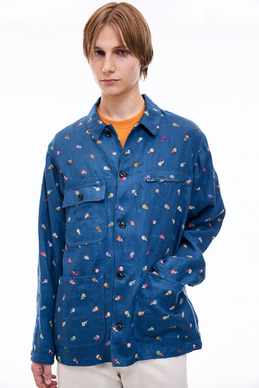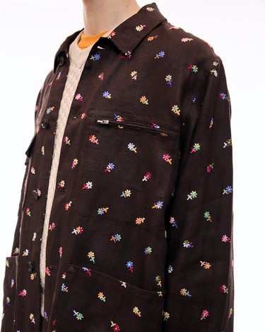 Our signature Chore Jacket, reimagined in Safilin linen with an all over floral motif embroidered pattern. Merging our signature aesthetic with utilitarian details, the chore jacket features multiple outer pockets including one zippered pocket with custom hardware, and one lined interior drop pocket.