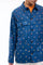 All-over embroidery is done with white polyester thread, followed by a mapping print applied exclusively to the embroidered areas.