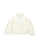 A water repellent and windproof down jacket utilizing all natural down feathers and a Limonta nylon outer shell. With a two way zipper closure, drawstring hem, and two lined hand warmer and two exterior patch pockets, as well as two interior drop pockets. Features vowels kamon embroidery on exterior patch pocket.
