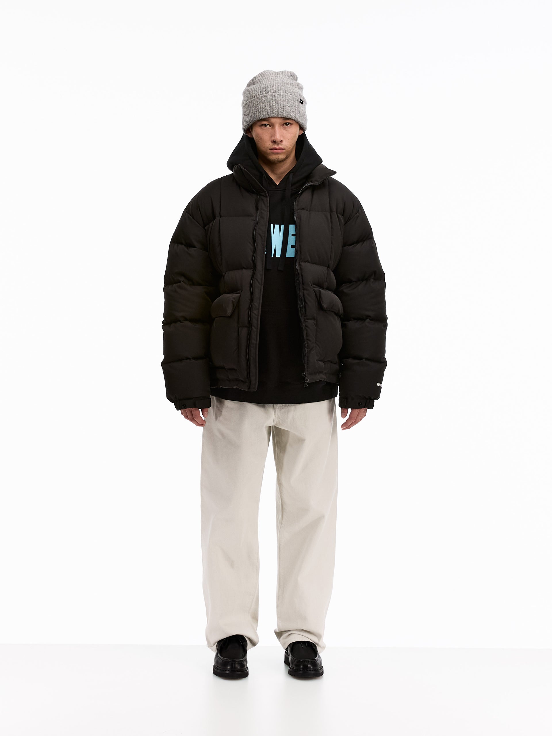 A minimalist down filled jacket made with LIMONTA nylon fabric, combining warmth retention with functionality.