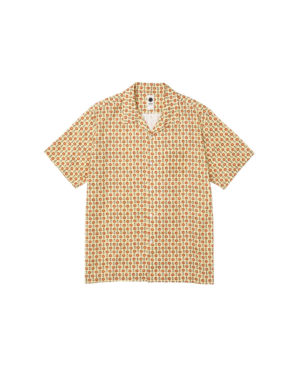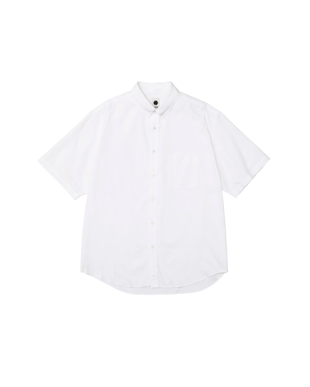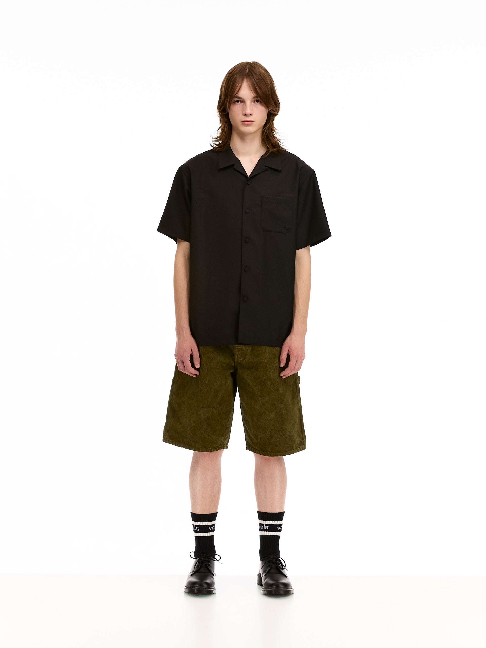 An open-collar wool-mohair shirt, with a sturdy handfeel and high-quality sheen.