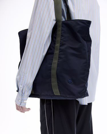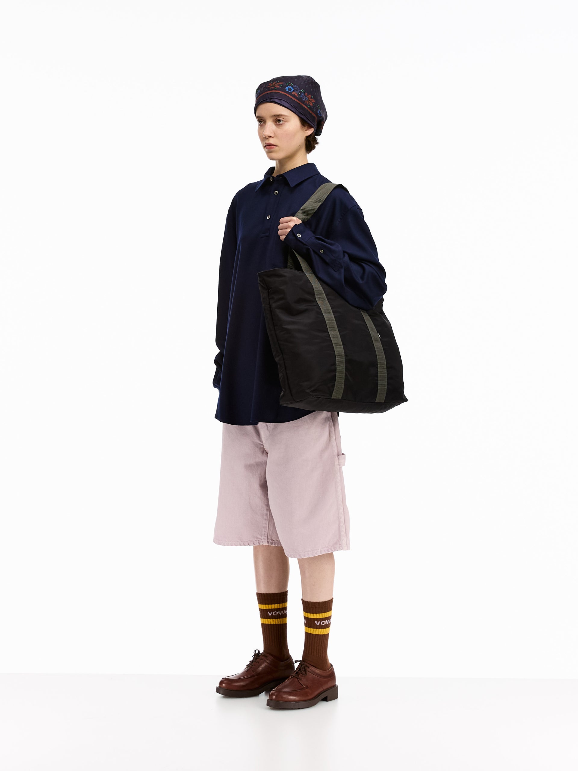 A utilitarian designed tote bag built for everyday use. Featuring a vowels brand label on fabric tape, custom engraved zippers, and an interior storage pocket.
