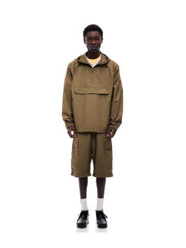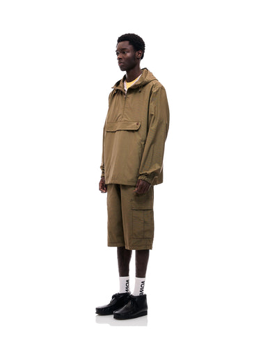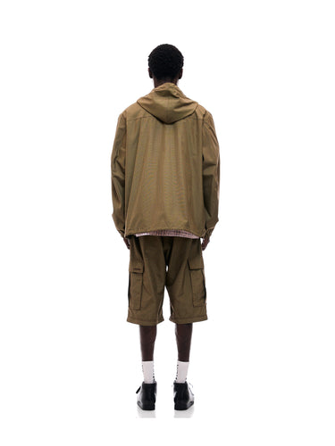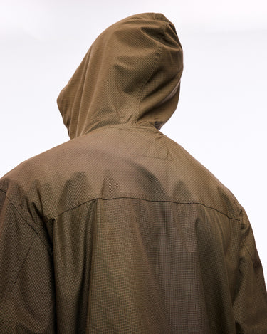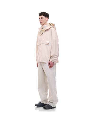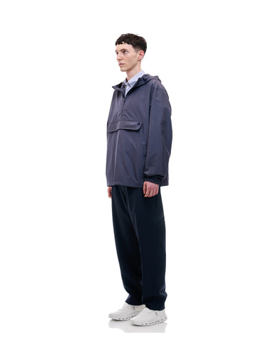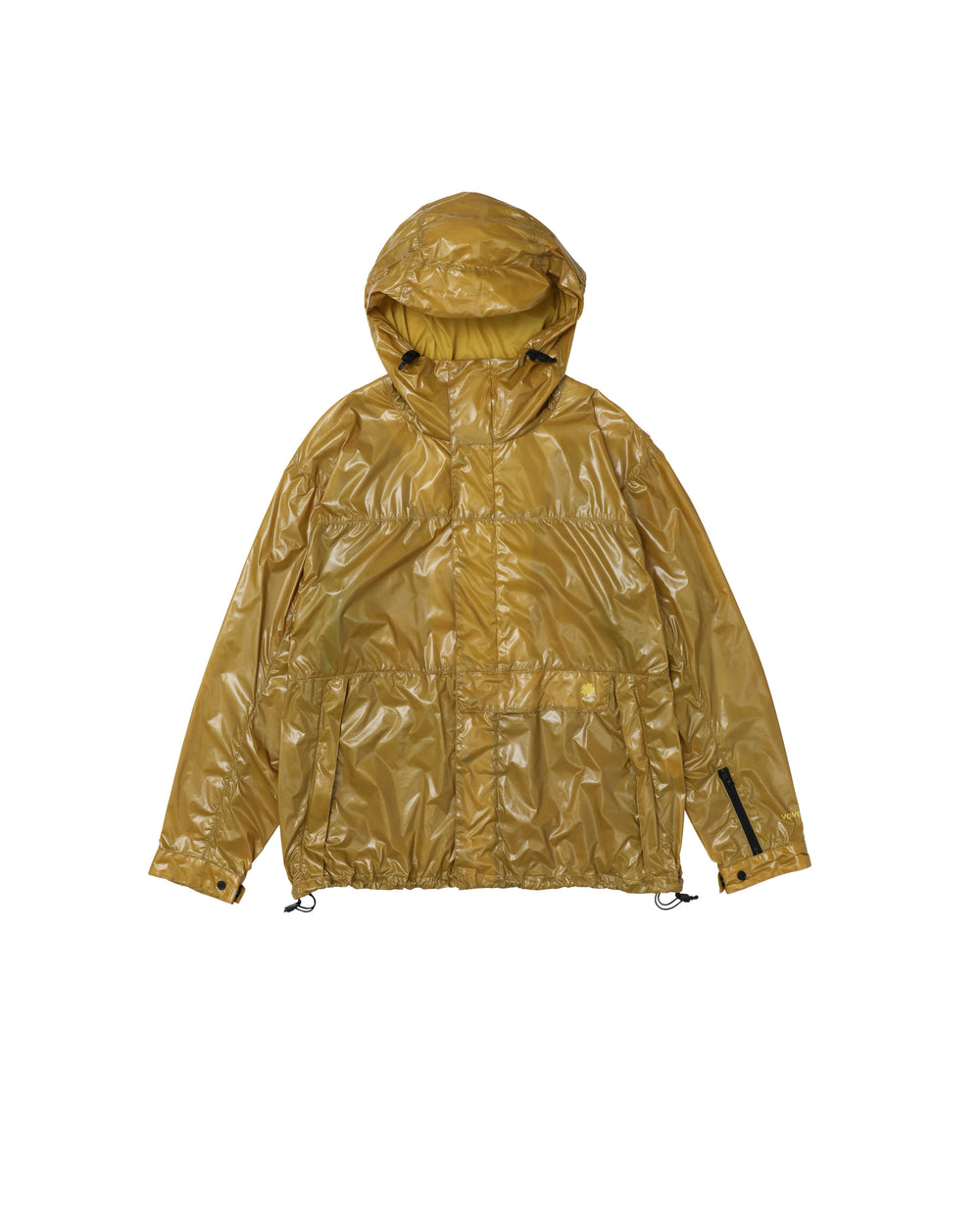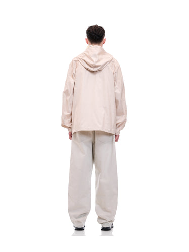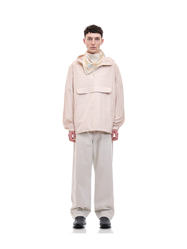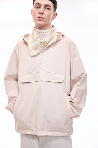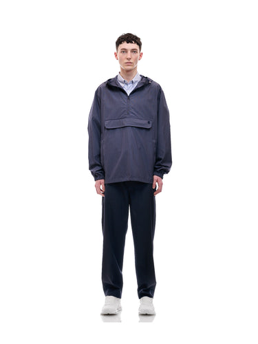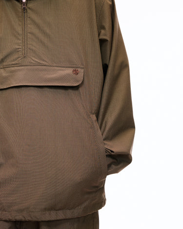 A utilitarian and refined anorak made from high sheen checkered silk. Matching form with functionality, the jacket is fully packable, utilizing its own pocket as a stuff sack, and features vowels kamon embroidery on the pocket flap, with custom zipper hardware, drawstring adjustable hem, and elasticized cuffs.