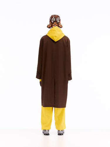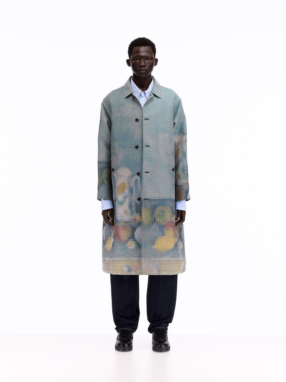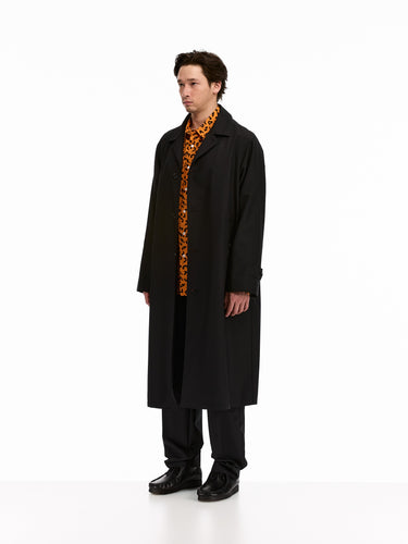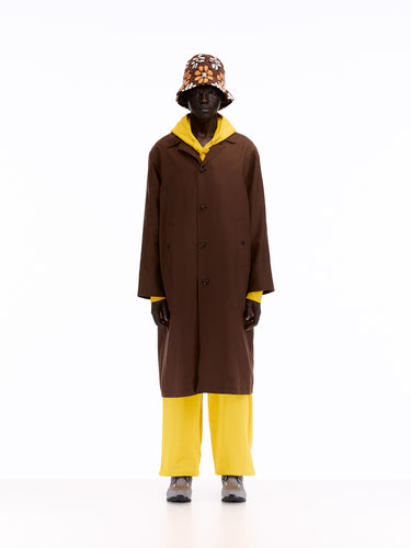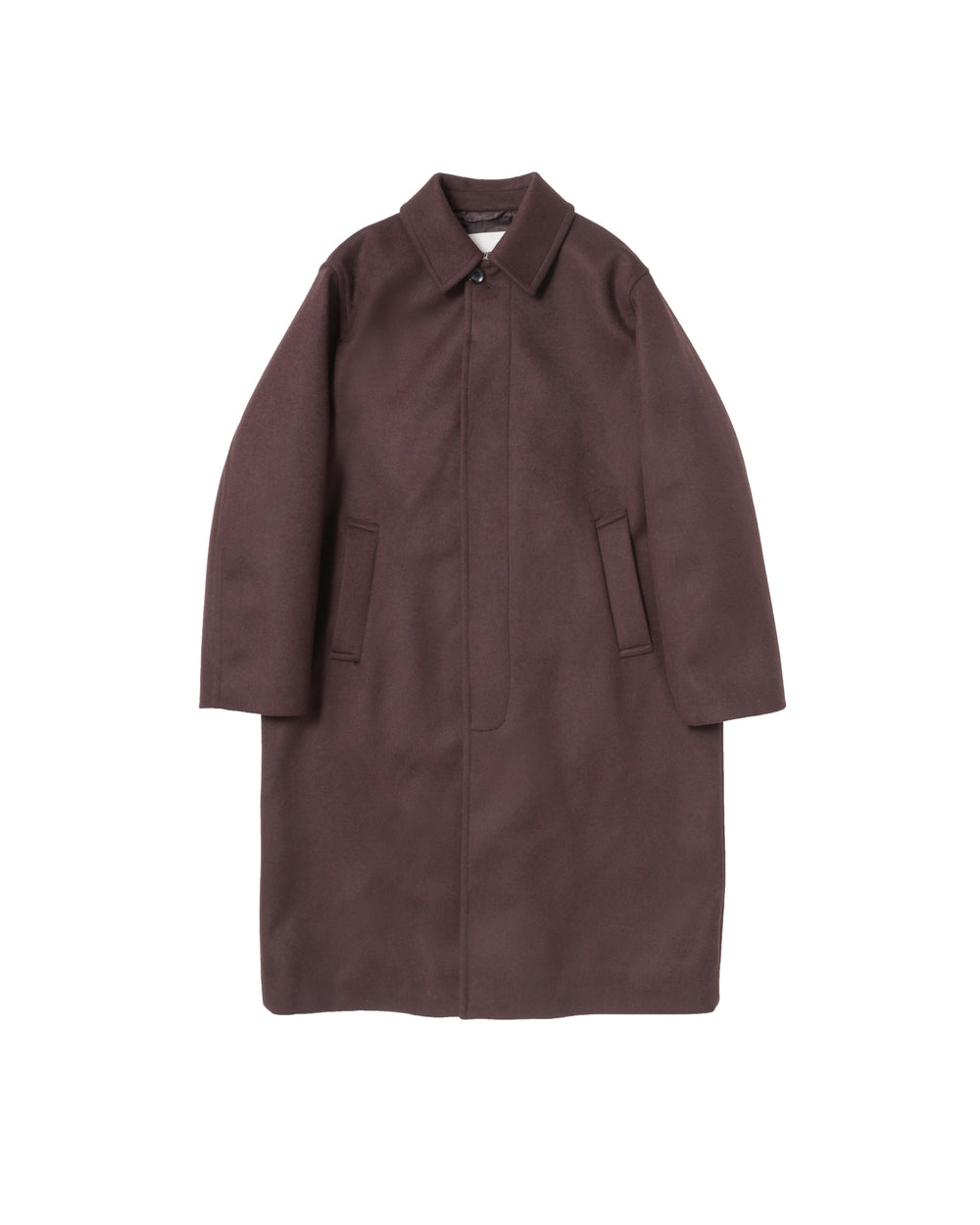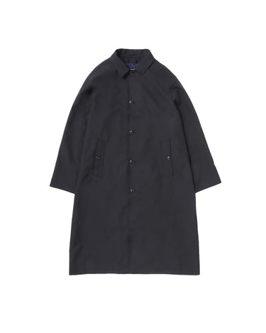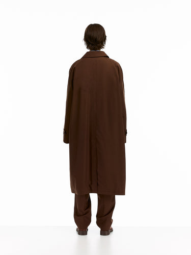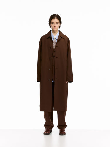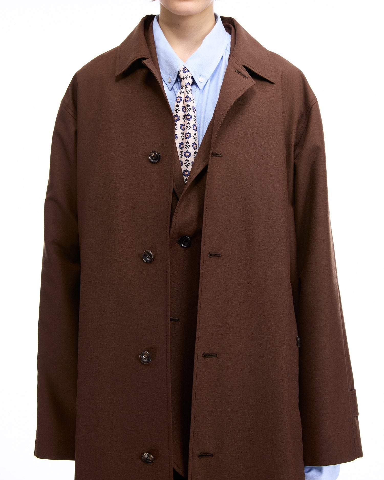 A discerning split raglan coat made from a firm wool-mohair blended fabric.