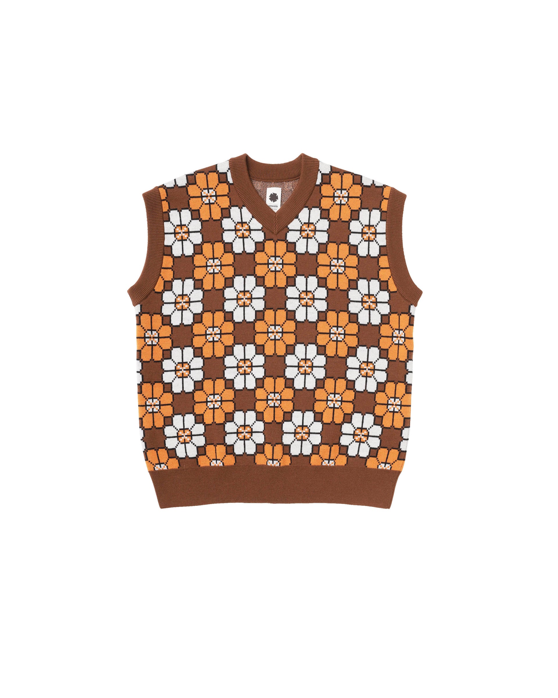 A knit vest featuring an original jacquard knit pattern.